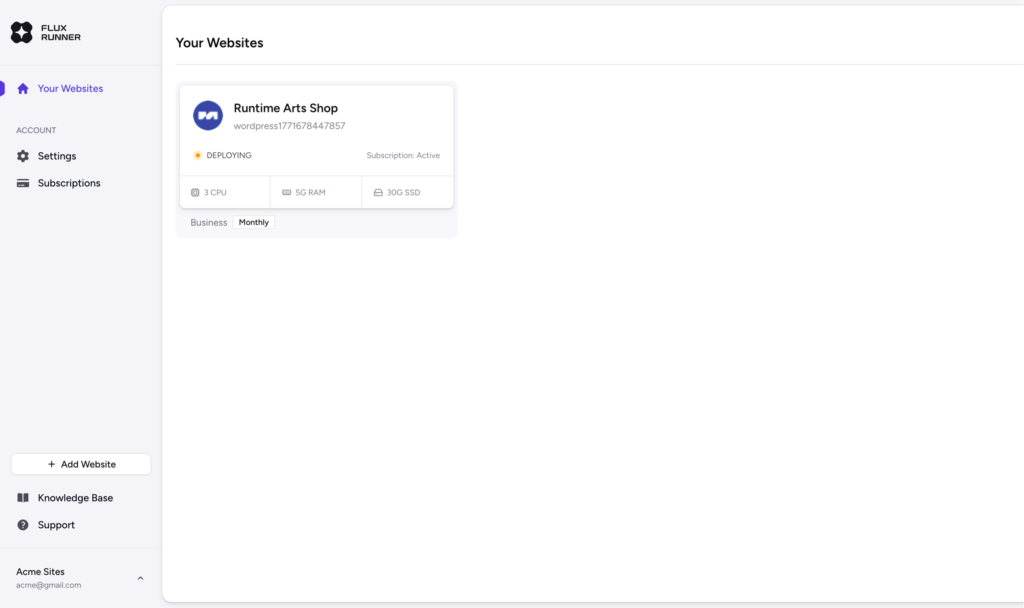When you create a new website, your website is spawned as a WordPress dApp(decentralized application). During the installation period, you may see your website displaying “Deployment in Process” screen.
