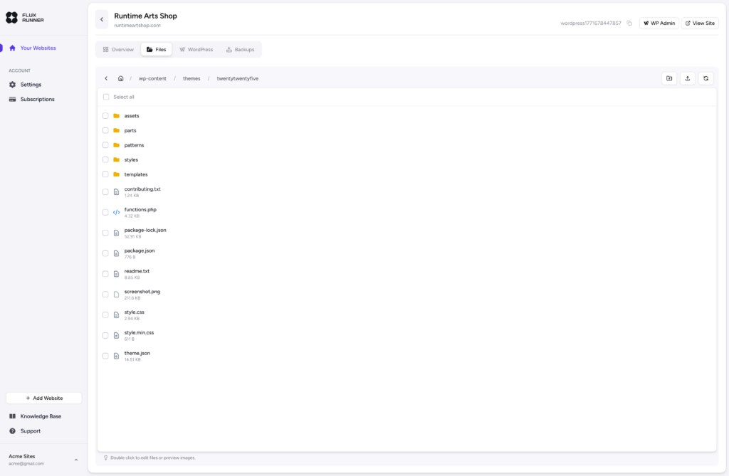 Once you are in your FluxRunner dashboard, click on your website and then navigate to the Files tab where you will be able to manage all files of your website.